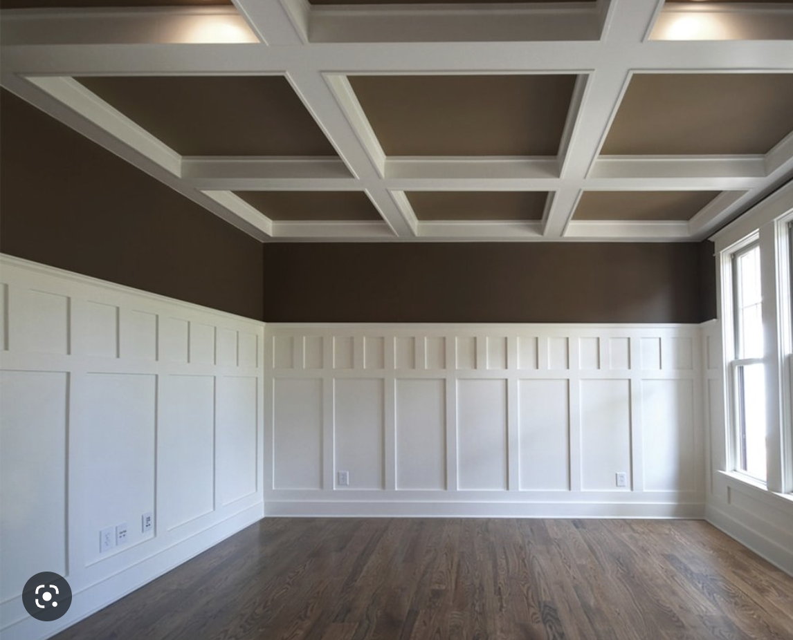 A variety of board & batten designs could be applied from floor to ceiling. The examples I found mostly show monochromatic approaches but the boards and batten can be painted in contrasting or complementary colors, different shades of the same hue, or in the same or different sheens (e.g. semi gloss boards on a flat batten).