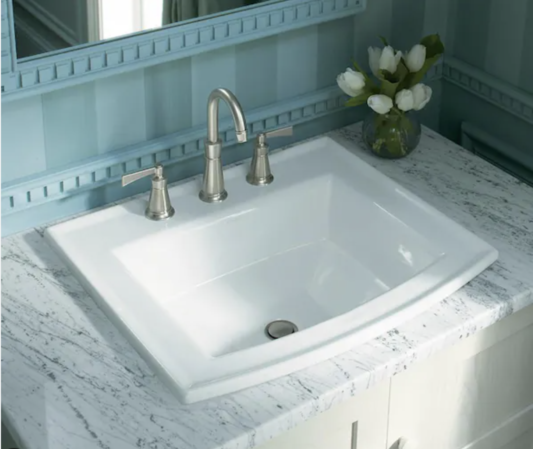 The following 6 sinks represent different designs that could work with your vanity. These are simply a starting point to show you what low, medium and high profile sinks look like in oval and rectangular shapes. If you don’t love any of these, let us know if you prefer oval or rectangular, which profile height you like best and which type of faucet you want. We can then pull more examples for you to choose from.