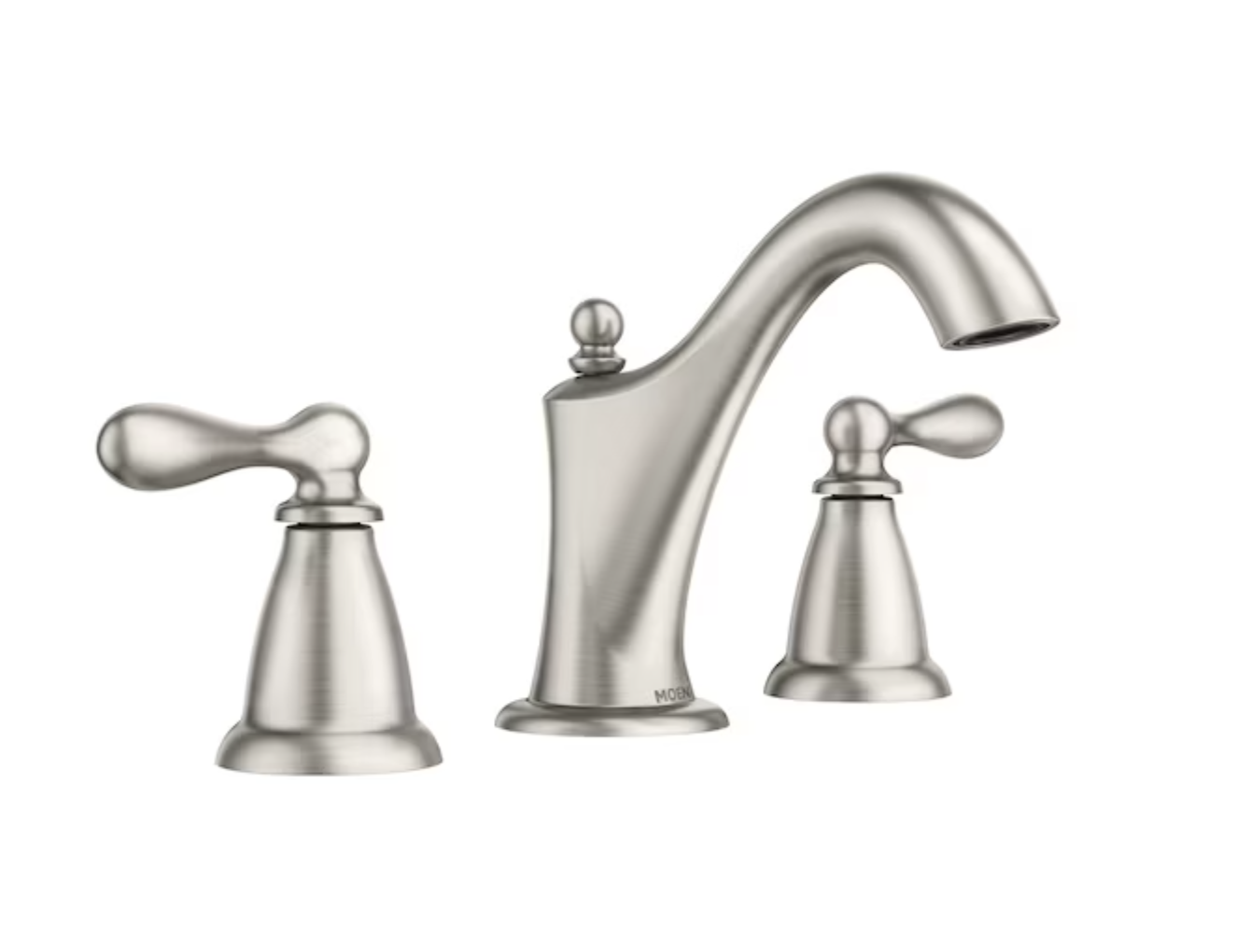 Moen Brantford widespread faucet in brushed nickel available from Build.com for $168.33.